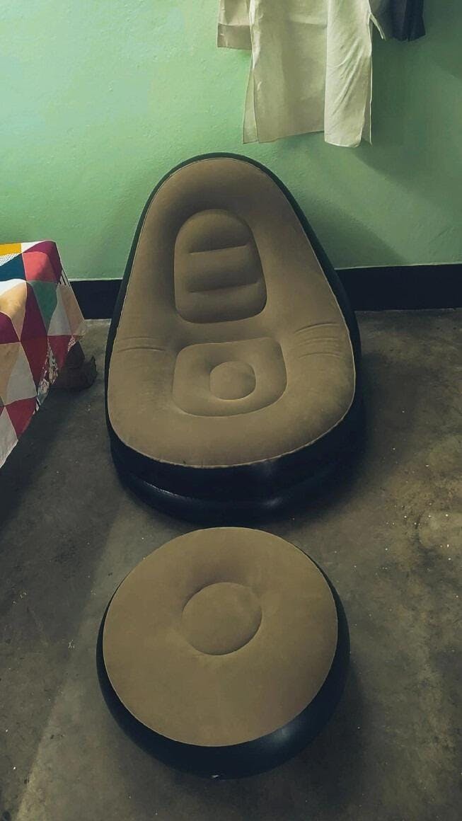 Upgrade your relaxation game with this premium inflatable lounge chair. Designed for modern homes, dorms, and travel, this chair combines style, comfort, and convenience in one lightweight package. Comes with a matching footrest and an easy-to-use pump, so you can set it up anywhere in minutes.